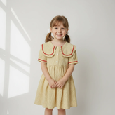پیراهن دخترانه نخی یقه ملوانی طرح چهارخانه (وارداتی)